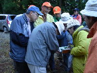 参加者は18人の小・中学生と、その保護者が13人で、森林インストラクターの指導で午前中、公園内を散策し、触ったり、匂いを嗅いだりしながら樹木を勉強し、午後は認定試験に臨みました。出題は40種の樹木で、かなり難しかったようで、最高は四段、最低は参加賞(正解0)でした。